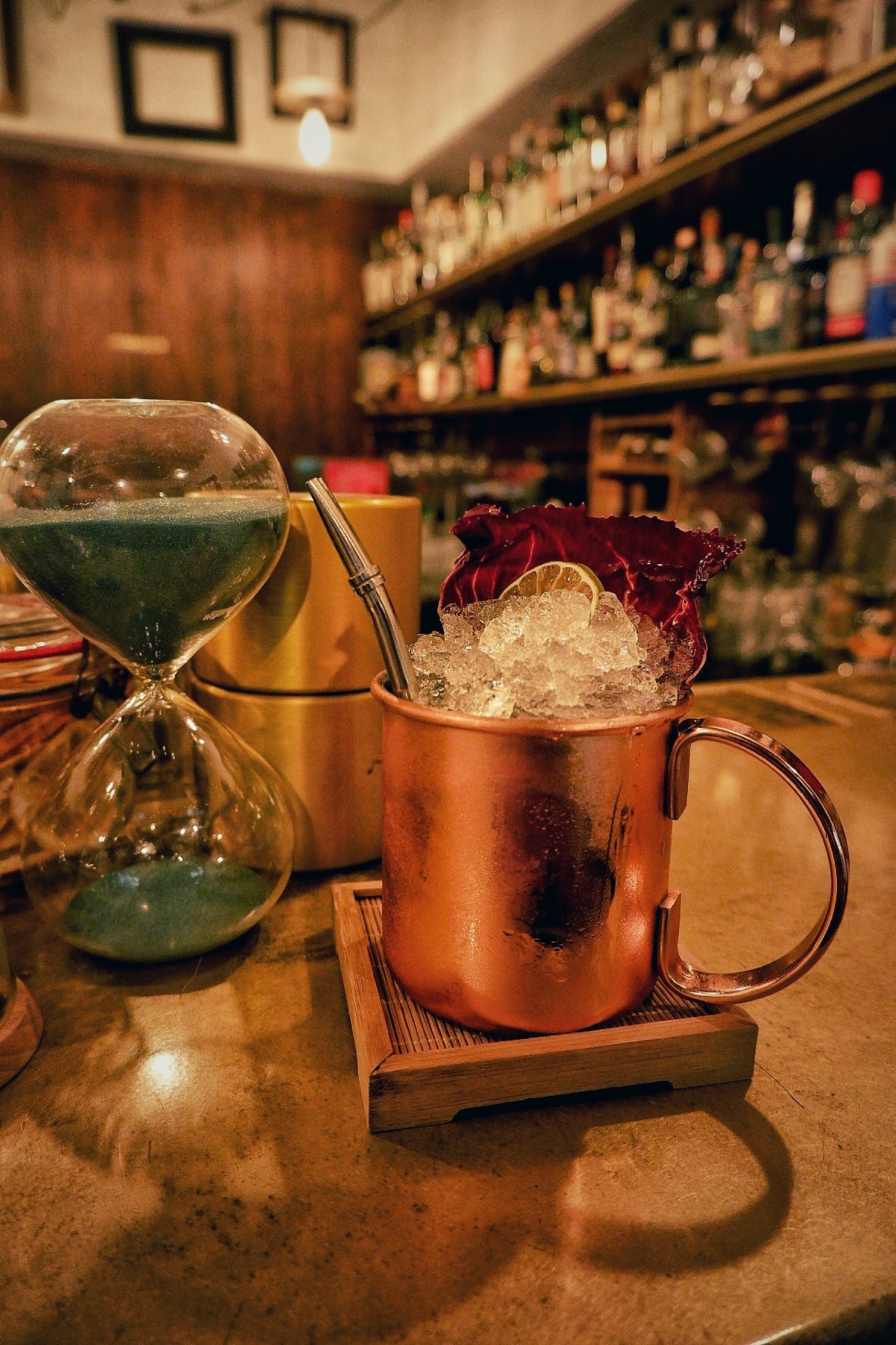 E non sono i soli. Tra i bar di temerari citiamo anche gli amici del Time Social Bar. Un localino piccino e accogliente con una grande selezione di distillati e tanta cura nella ricerca delle materie prime e nella presentazione dei drink. Qualche clessidra qua e là, lucine soffuse e tanta dedizione da parte dei proprietari. Sono capitata qui in un raro periodo detox, e ho bevuto un analcolico attualmente tra i primi nella mia classifica alcol free. Alcol included, sempre molto bene.