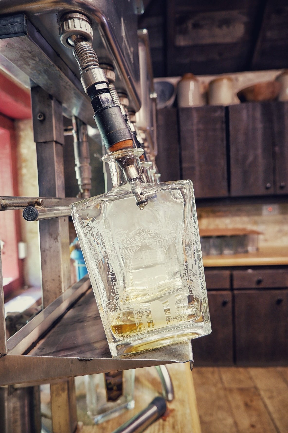 La distilleria, come un enorme laboratorio, distilla con i due diversi strumenti e invecchia in botti di varia provenienza, a seconda del profilo aromatico richiesto.