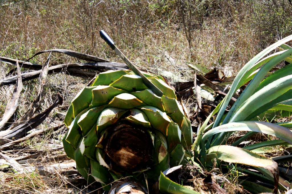 L’agave può impiegare fino a 15 anni (in base alla specie) per maturare. Nel caso della produzione artigianale, ogni pianta viene scelta al suo picco di maturità, pulita e tagliata (jimada) direttamente nel campo.